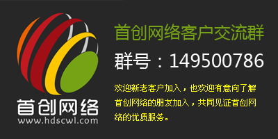 為給大家增加一個更好的溝通和交流的空間,首創(chuàng)網(wǎng)絡開通千人交流QQ群: 群名稱是:首創(chuàng)網(wǎng)絡客戶交流群 群號:149500786 歡迎新老客戶加入,也歡迎有意向了解首創(chuàng)網(wǎng)絡的朋友加入,共同見證首創(chuàng)網(wǎng)絡的優(yōu)質(zhì)服務。 也可掃描二維碼加入