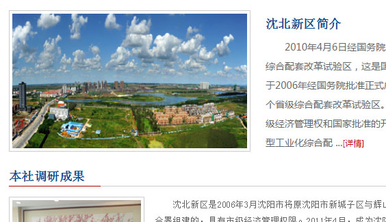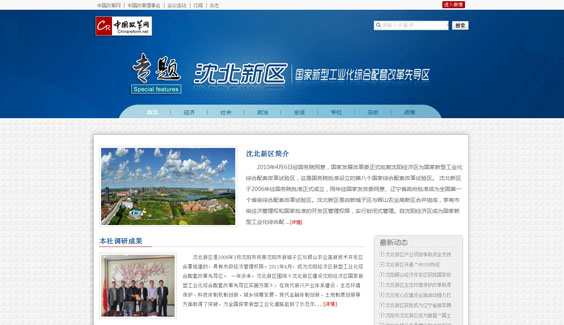 負責中國改革網(wǎng)沈北新區(qū)專題頁面的設計制作,該頁面以藍色為主色調(diào),加以紅為點綴加以突出,符合新區(qū)銳意進取的園區(qū)精神,整個設計,簡潔,大方。