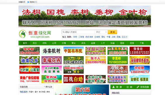 創(chuàng)藝綠化網(wǎng)是國內(nèi)較早的苗木花卉行業(yè)門戶網(wǎng)站,經(jīng)過多年的運行和多次的改動,網(wǎng)站已發(fā)展成為框架完善、信息豐富、功能強(qiáng)大的電子商務(wù)服務(wù)平臺,是園林、苗木、花卉、綠化行業(yè)的商業(yè)貿(mào)易門戶網(wǎng)站,目前已有全國各個省市的企業(yè)在本站注冊成為正式會員。