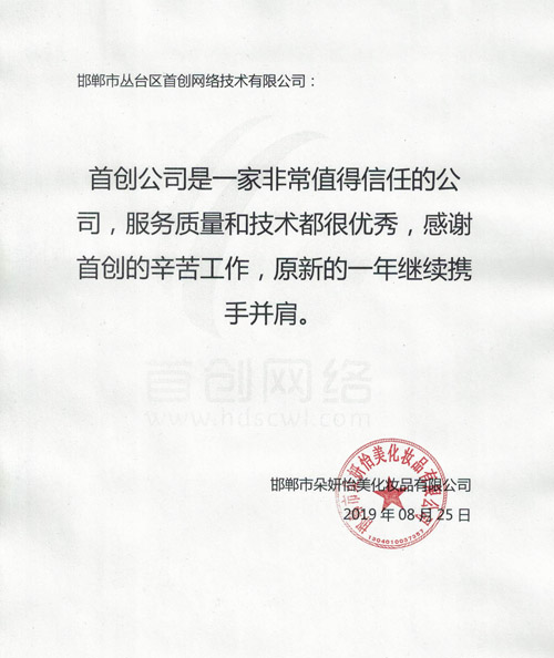 邯鄲市朵妍怡美化妝品有限公司對我公司評價